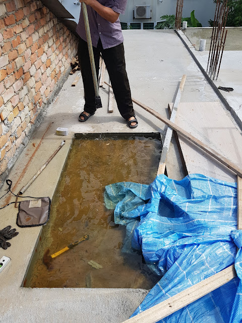 Nevertheless, what can we do ? As upsetting and ridiculous as it sounded, even the Architect had to get involved on this. Anyway, hack away. 6 inches of G25 Grade Concrete with all those stones that strengthened with all that rain, had to hacked.